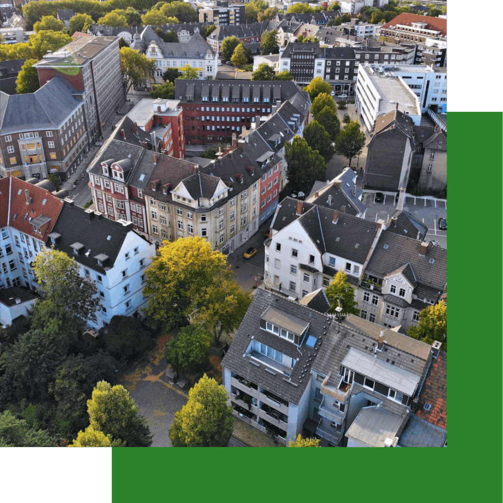 Früher war im Shamrockpark die Ruhrkohle-Verwaltung untergebracht. Seit 2022 entsteht auf dem 100.000 m2 großen Gelände ein Reallabor der Energiewende. In dem neuen Gewerbe- und Wohnquartier werden alte Gebäude saniert und durch Neubauten ergänzt. Für die Energieversorgung kommen unter anderem Photovoltaikanlagen und Wärmepumpen zum Einsatz. Kernstück des Energiekonzepts ist die von E.ON entwickelte Technologie Ectogrid. Das innovative System kombiniert Wärme- und Kälteströme intelligent zu einem dynamischen Niedertemperaturnetz und funktioniert wie eine thermische Batterie. Verbraucher können Wärme und Kälte bedarfsgerecht einspeisen und entnehmen. Von außen muss nur wenig Energie zugeführt werden. Das vom Bund geförderte Reallabor soll zeigen, wie ein nachhaltiger Umgang mit Ressourcen gelingen kann.